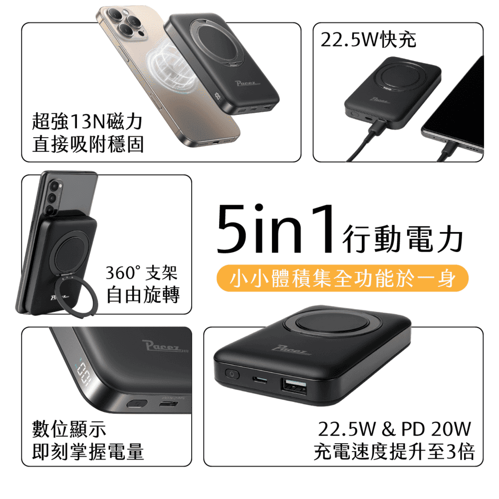 | 【PACEZ】22.5W 磁吸支架行動快充 | 台 | 團購價: 1,080 |