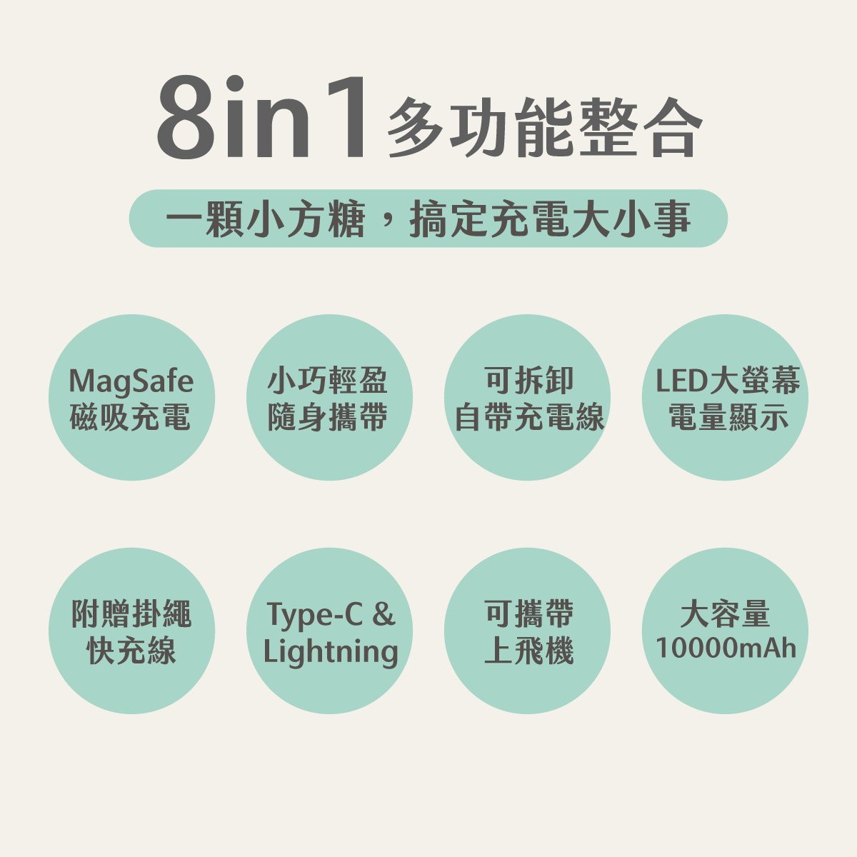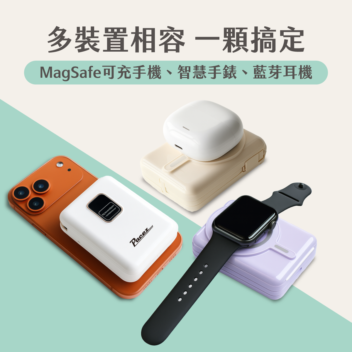 | 【PACEZ】Sugar Cube小方糖八合一磁吸快充行動電源 10000mAh | 奶茶、白色、紫色 | 團購價: 1,190 |