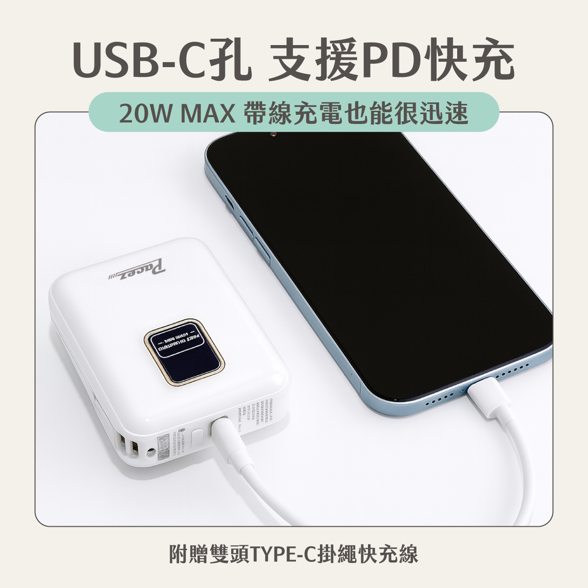 ● 附贈雙頭Type-C掛繩快充線