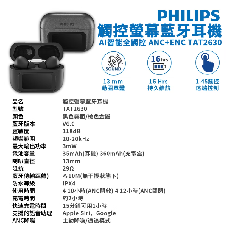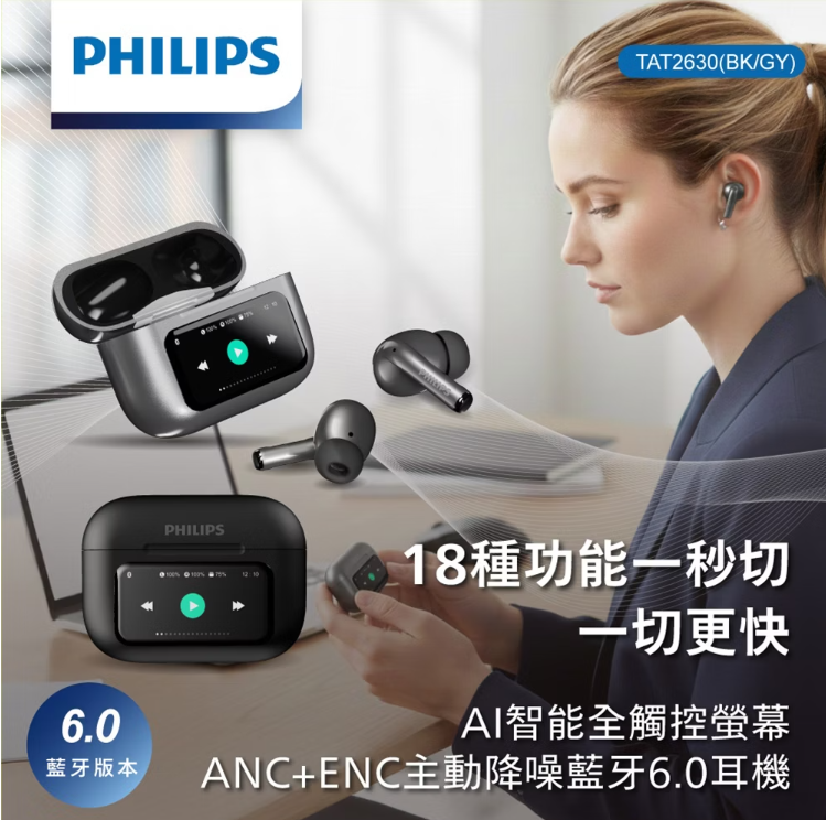 PHILIPS 飛利浦 觸控螢幕藍牙耳機