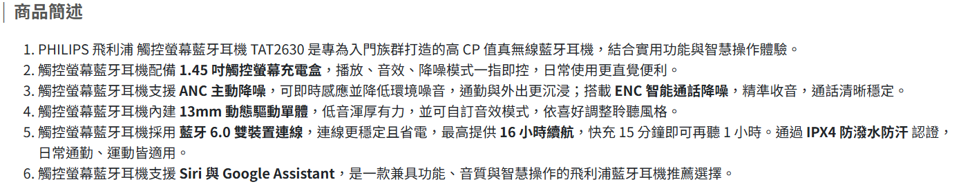 | PHILIPS 觸控螢幕藍芽耳機 | 台 | 團購價: 1,580 |