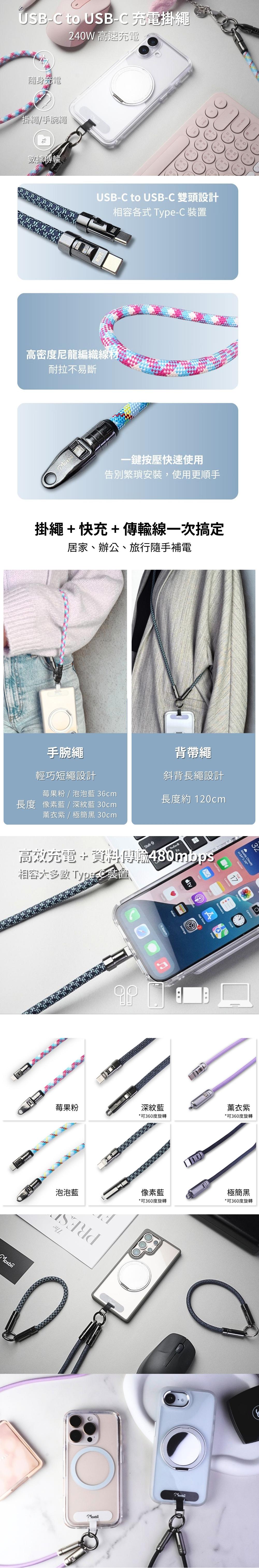 240W 快速充電 × 掛繩 × 傳輸線,一條搞定!