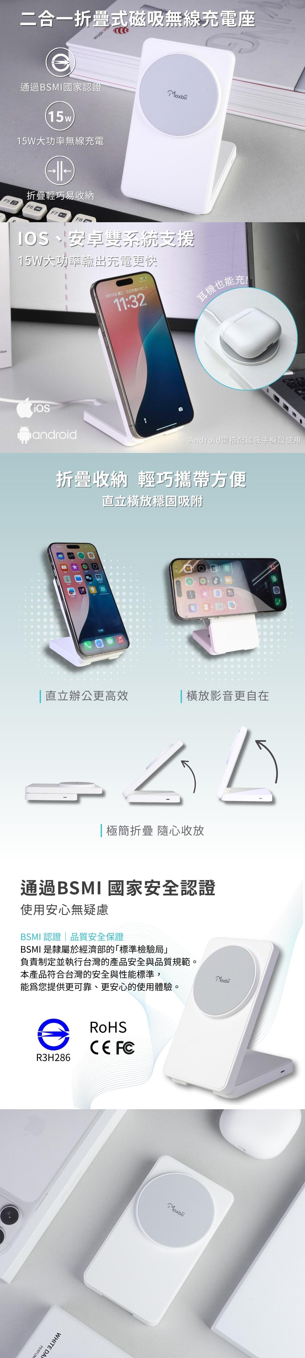 .15W高速無線充電|iOS、Android雙系統皆適用