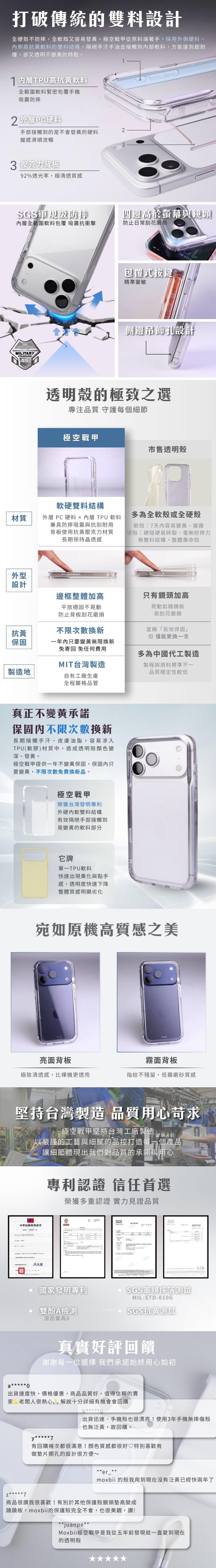 ◎ 如何使用保固:只要您是在正常使用極空戰甲的情況下,自購買日期起12個月內,極空戰甲有達到「TPU軟殼使用一個月後變黃的程度」,Moxbii提供無條件換新。