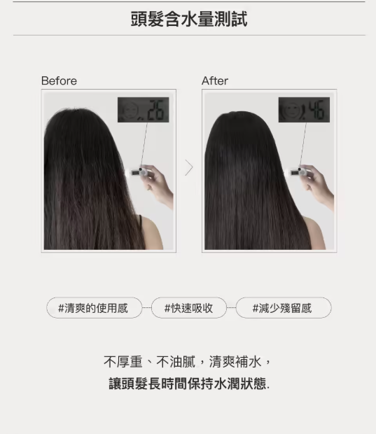 ㉻ 高濃縮高營養成分,完全被秀髮吸收,護髮更簡便,效果更顯著