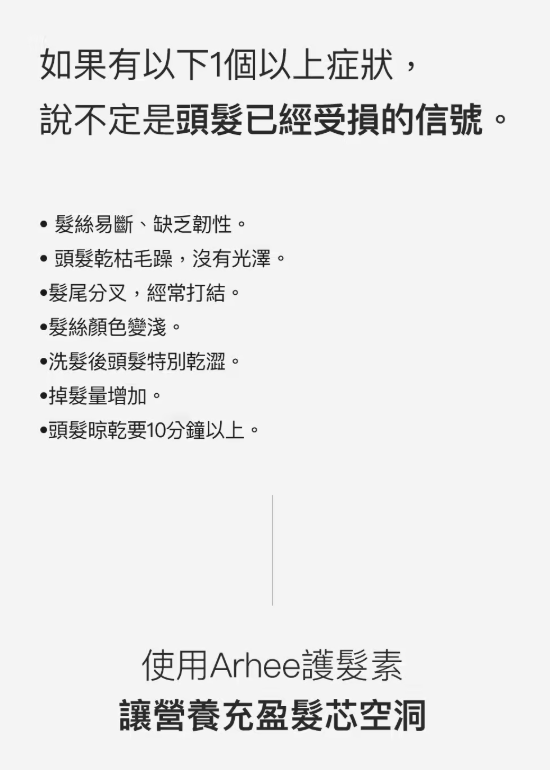 ● 髮絲內層出現髮芯孔洞,交給Arhee護髮獨家技術