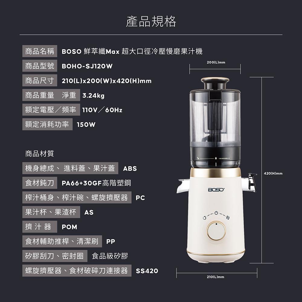 | BOSO 鮮萃纖Max 超大口徑冷壓慢磨果汁機 | 台 | 團購價: 3,280 |