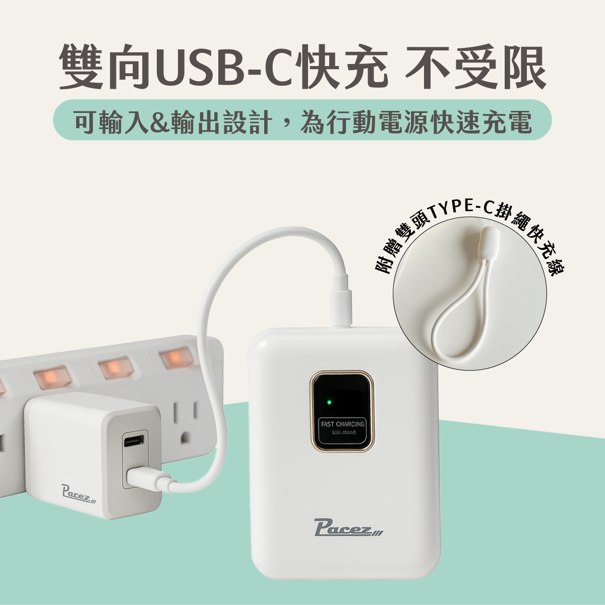 ● 附贈雙頭Type-C掛繩快充線