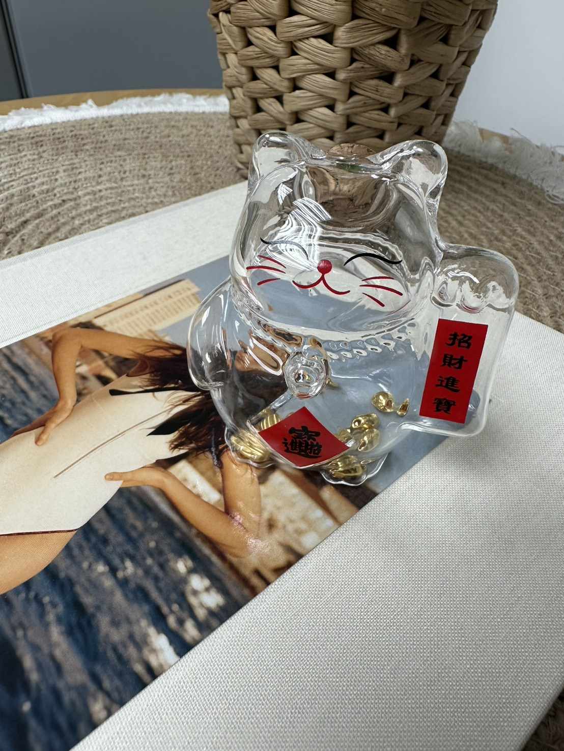 手工玻璃招財貓罐:1個