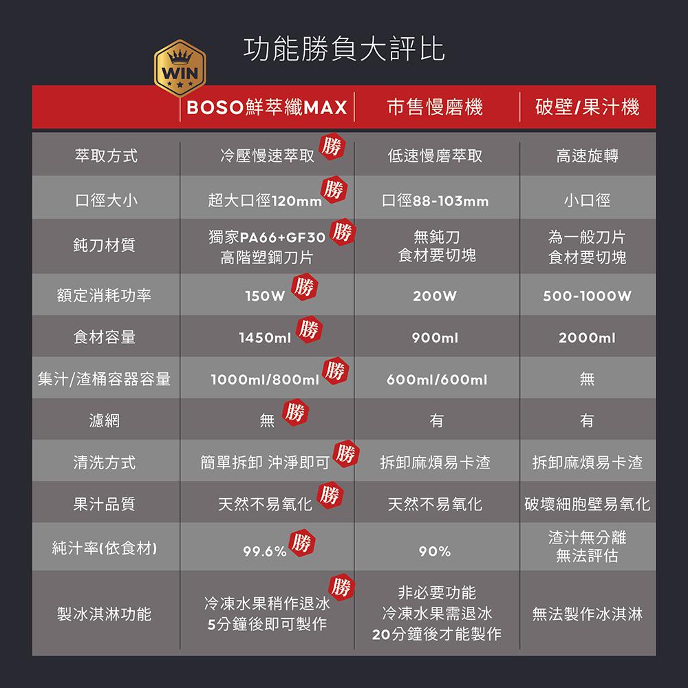 | BOSO 鮮萃纖Max 超大口徑冷壓慢磨果汁機 | 台 | 團購價: 3,280 |